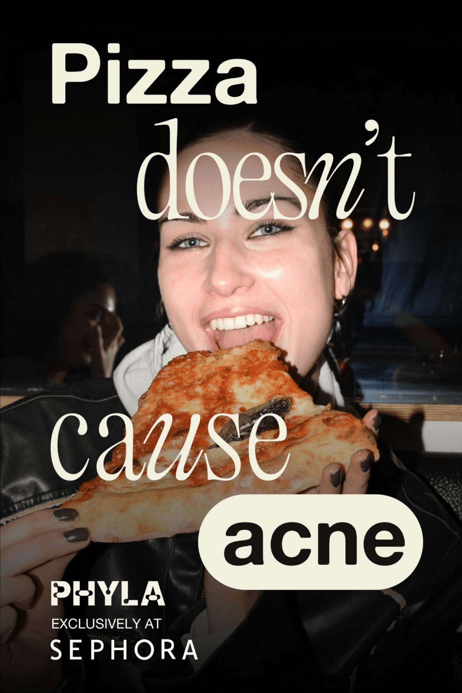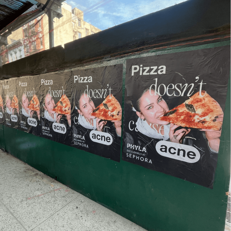 I led the creative for Phyla’s viral "Pizza Doesn’t Cause Acne" campaign, blending social media with a massive OOH presence across NYC. These four words worked because they were shocking, a little controversial, and intriguing.